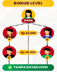 Bonusnya Tanpa batas kedalaman dan syarat perekrutan. (Setiap kiri turun 1, kanan turun 1 membentuk level baru. Selain dari perekrutan Nasabah baru, Titik Baru bisa didapat dari pembayaran premi/tabungan ke-2 dan seterusnya).