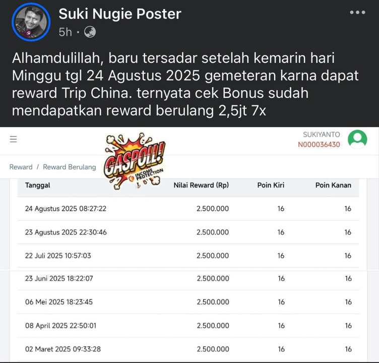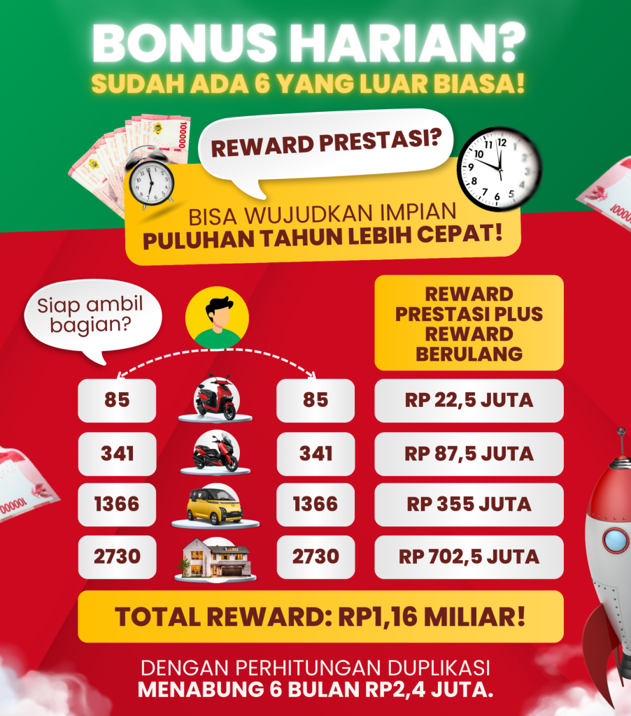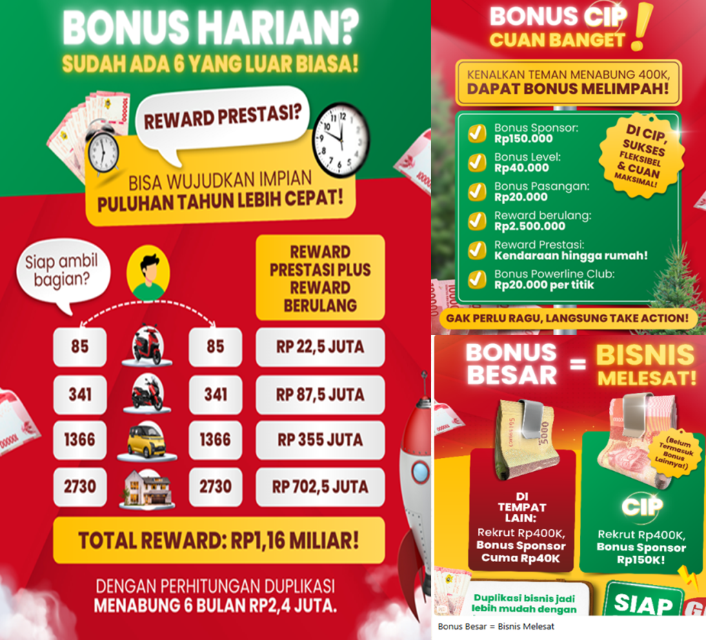 Dengan kekuatan clonning & omset terakumulasi tanpa batas waktu reward-reward CIP semakin dekat setiap harinya